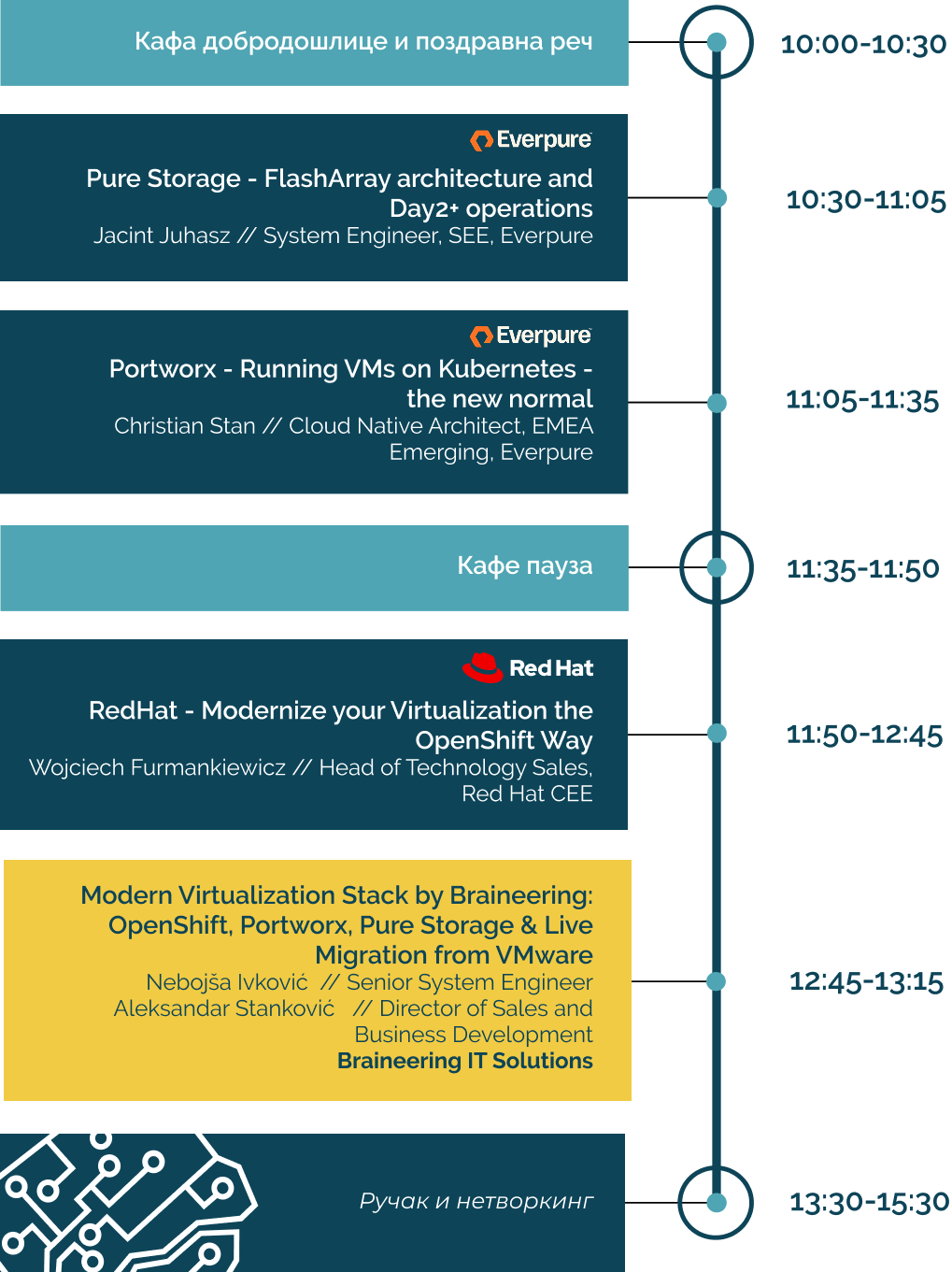Овом приликом желимо да Вас позовемо да 31.3.2026. присуствујете догађају у Golf Club Ada, Ада Циганлија 2, у Београду, током којег ћемо представити техничке могућности Everpure (formerly Pure Storage), Portworx и Red Hat производа у сфери виртуелизације.